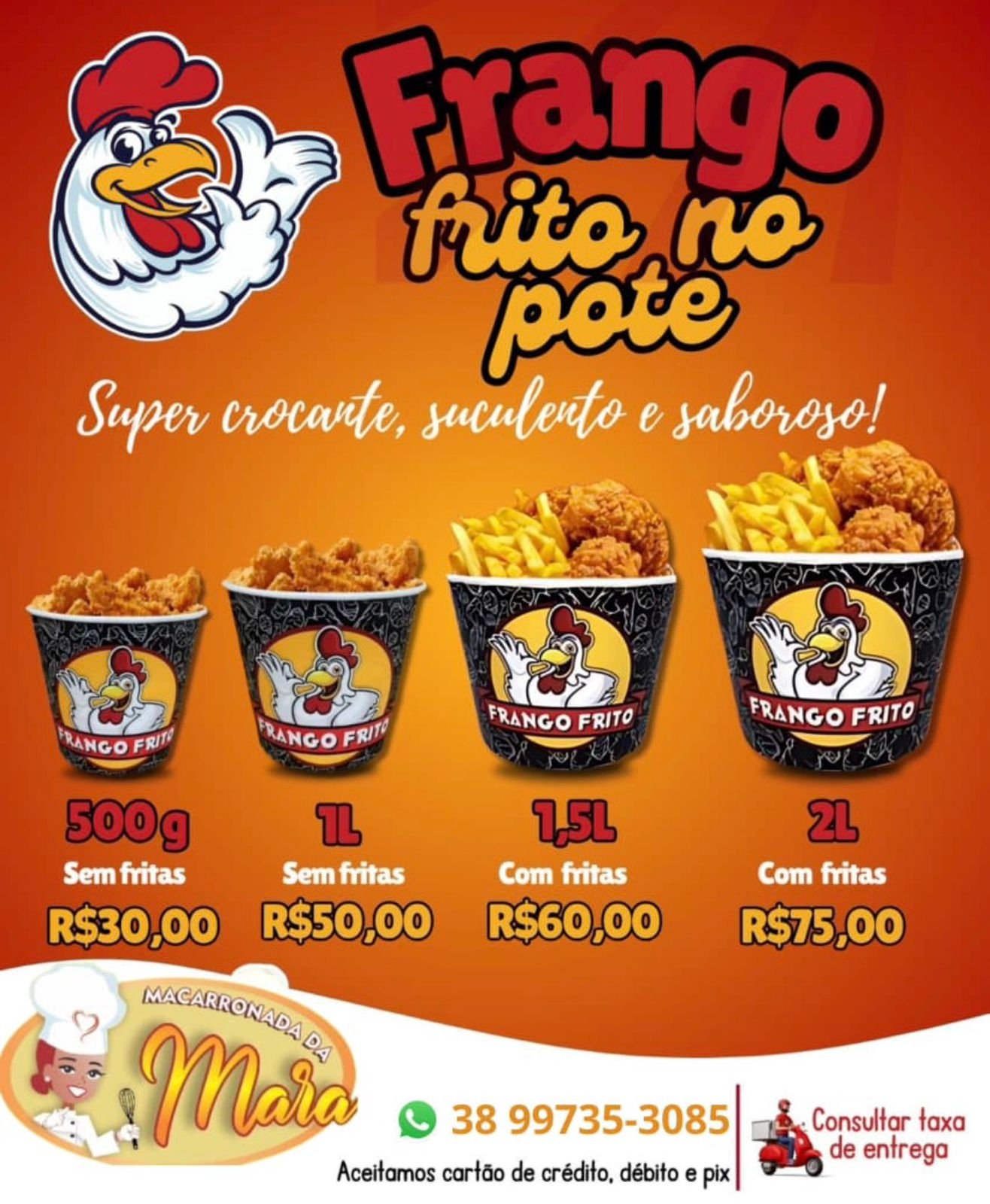 FRANGO FRITO NO BALDE COM BATATA FRITAS