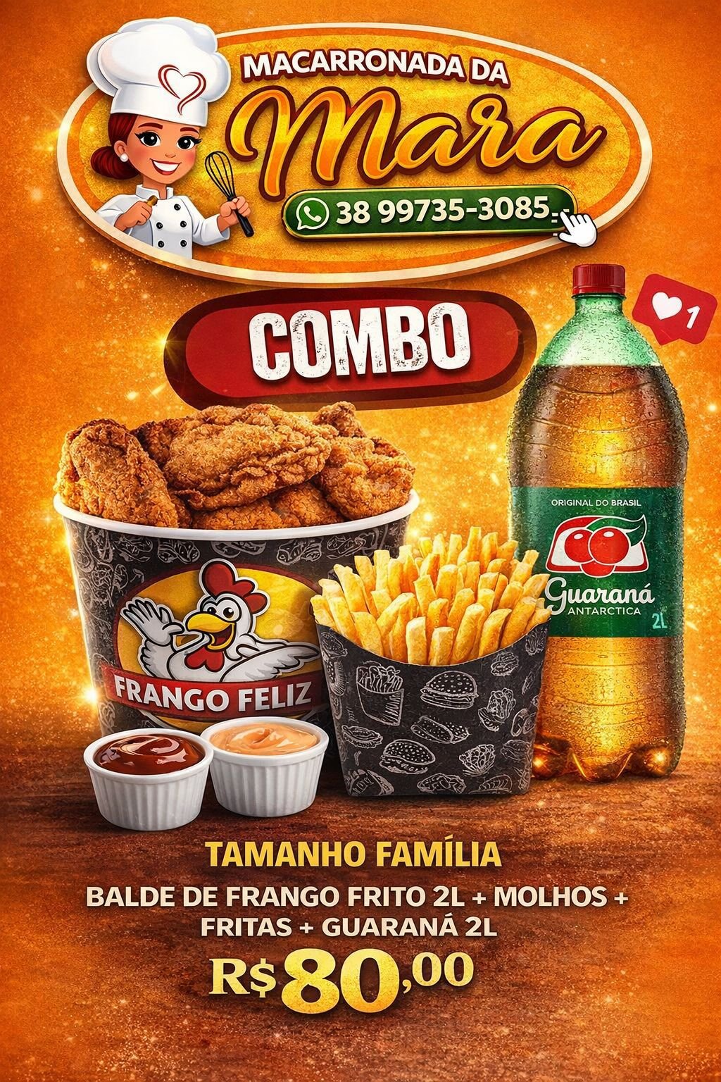 BALDE FRANGO FRITO 2L + BATATA FRITAS + GUARANÁ 2L